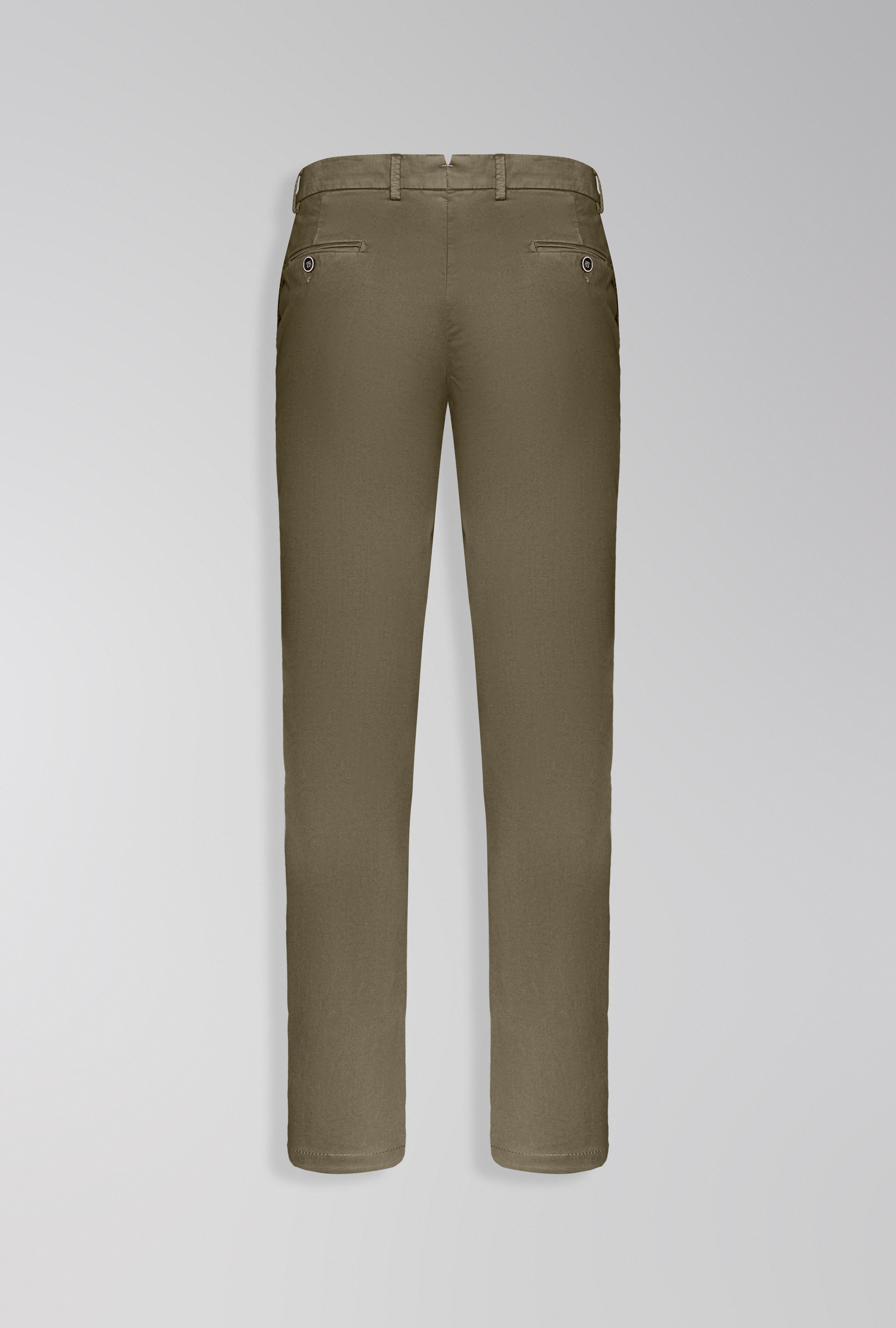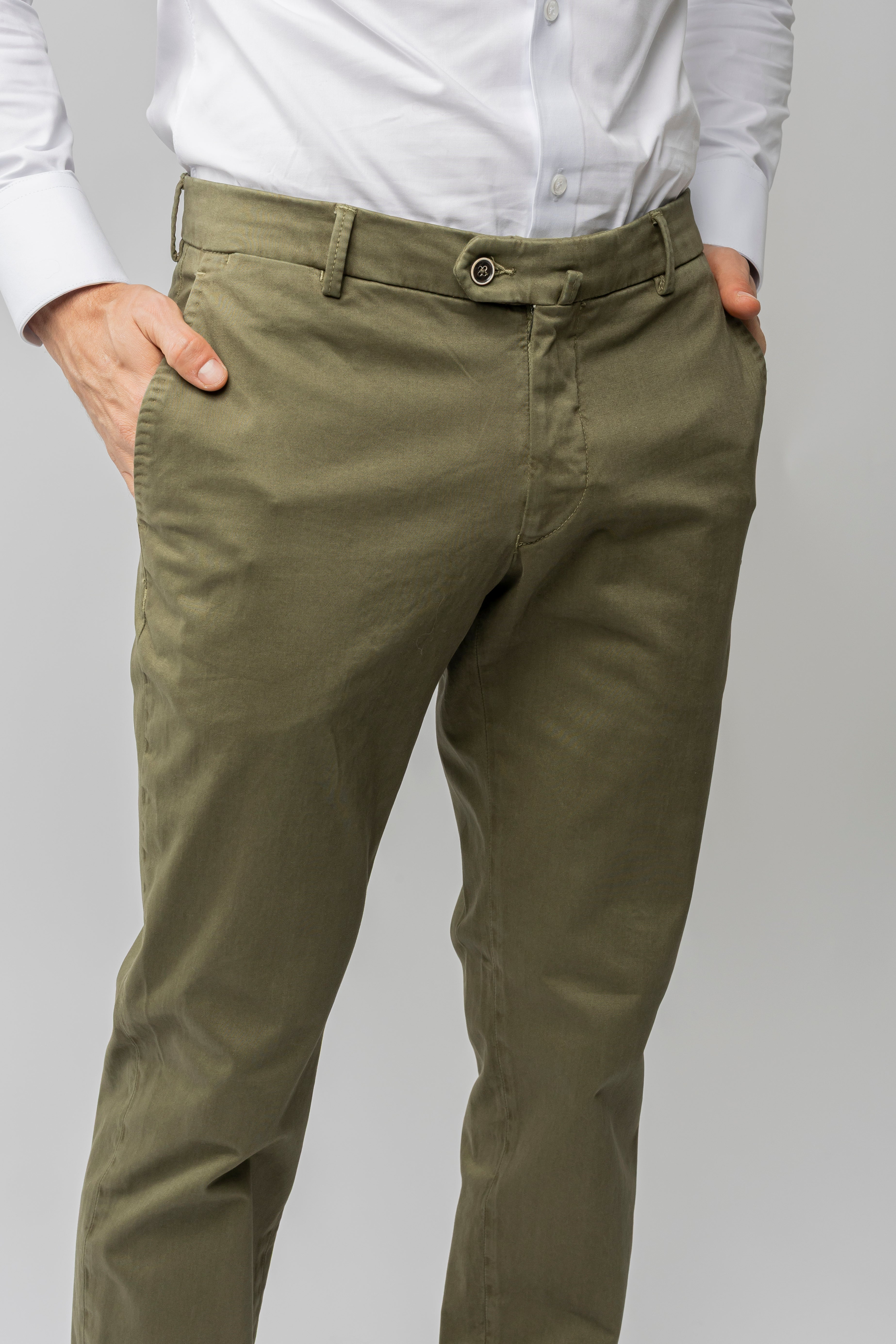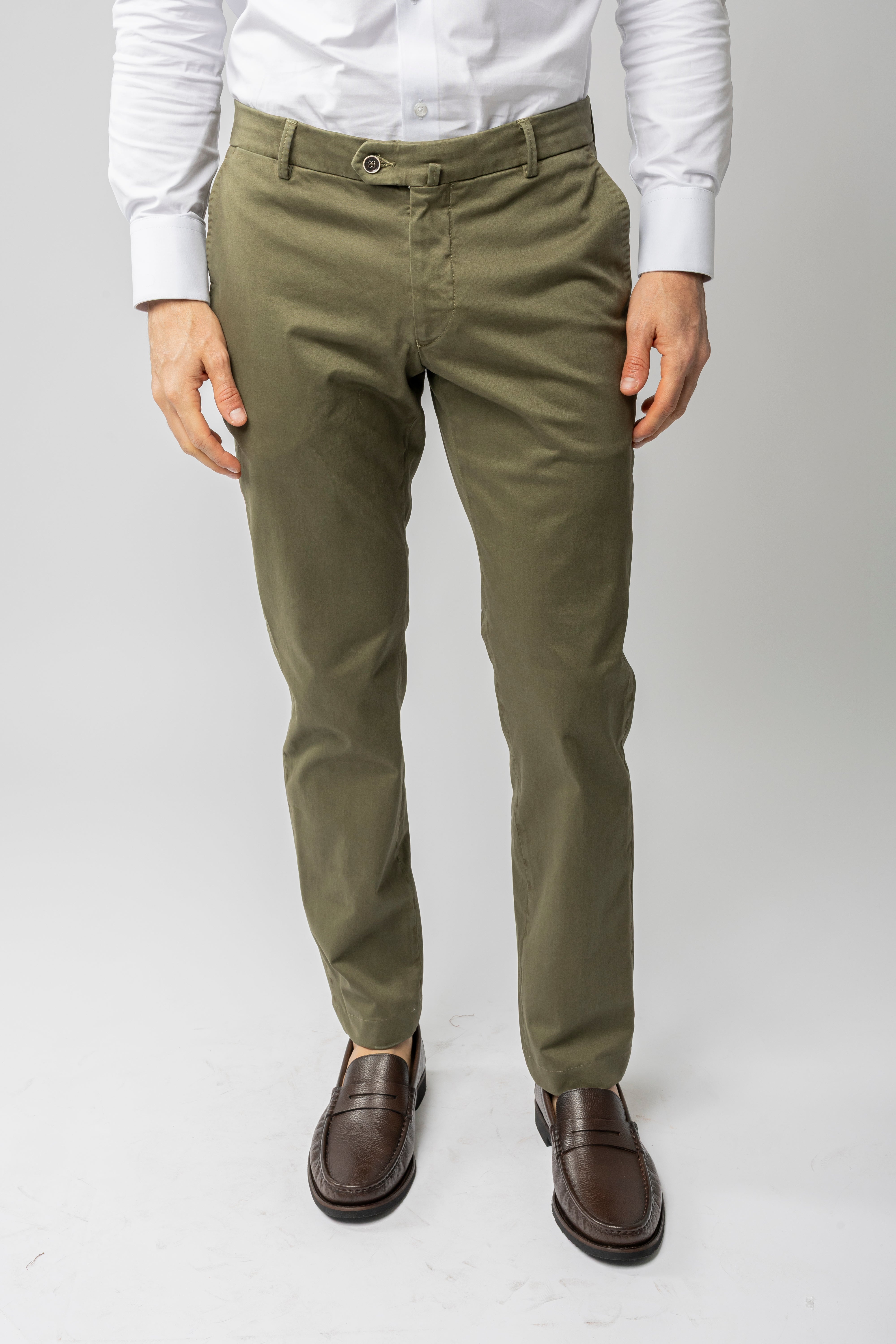 Calça de sarja de algodão, produzida na Itália em modelagem slim.