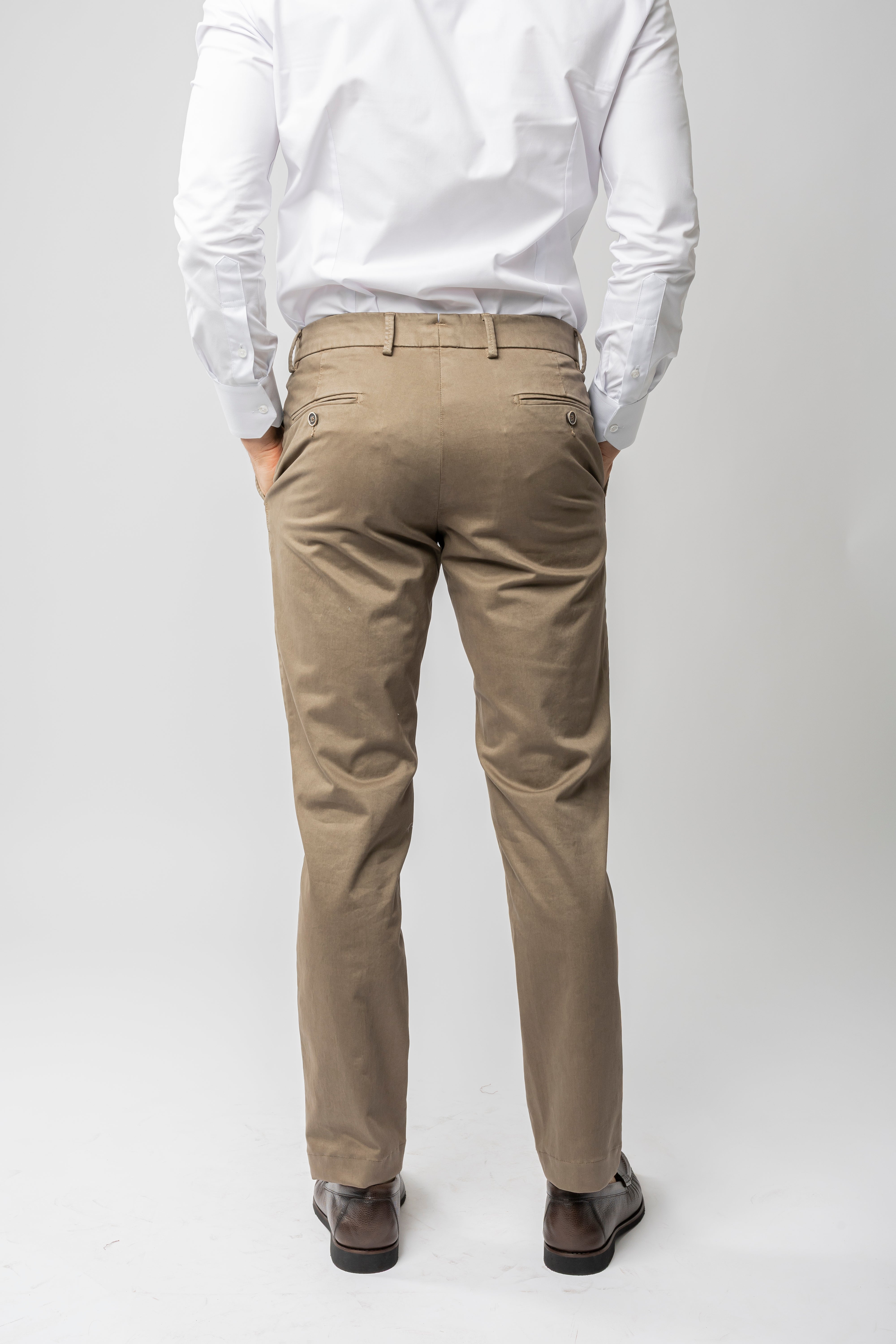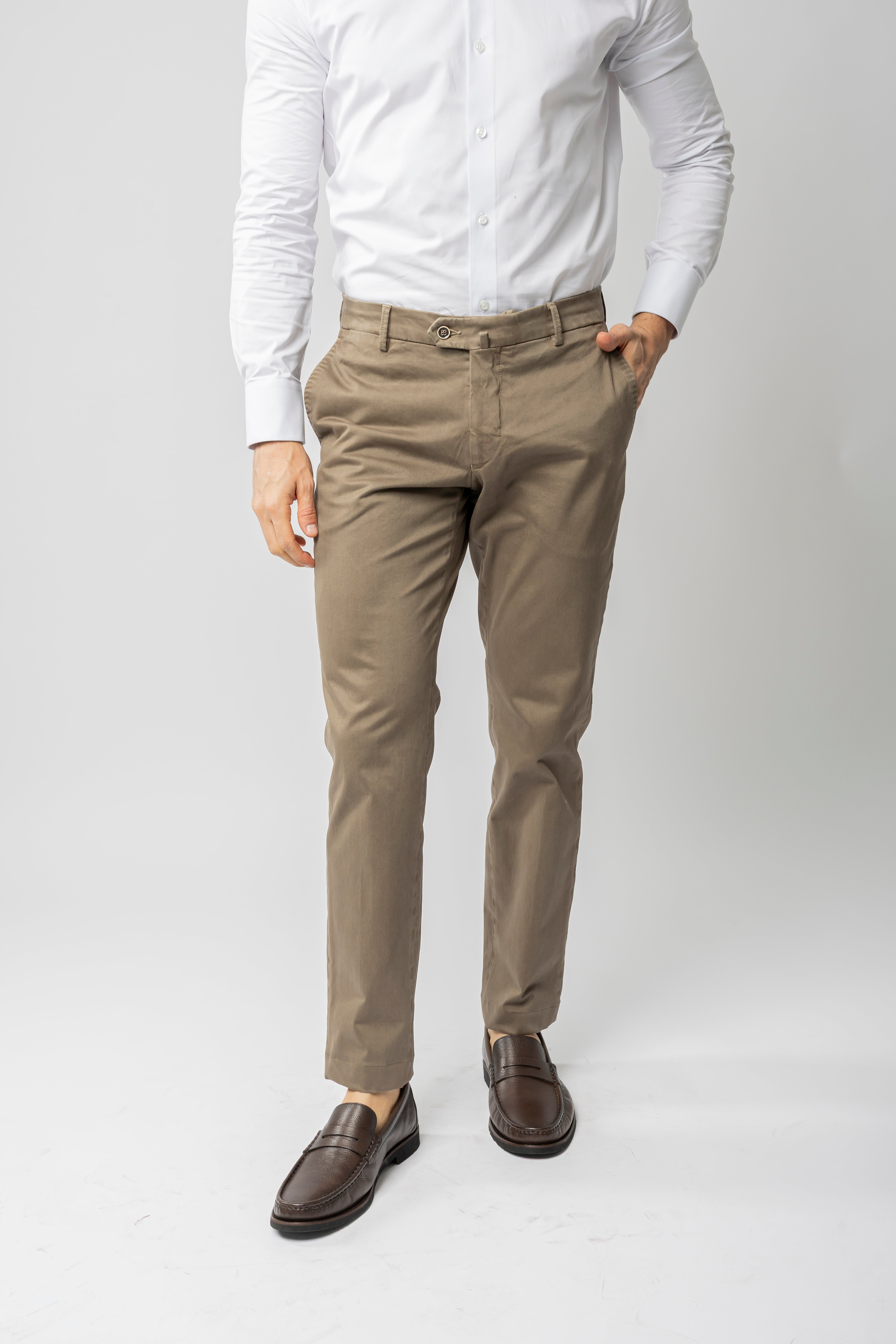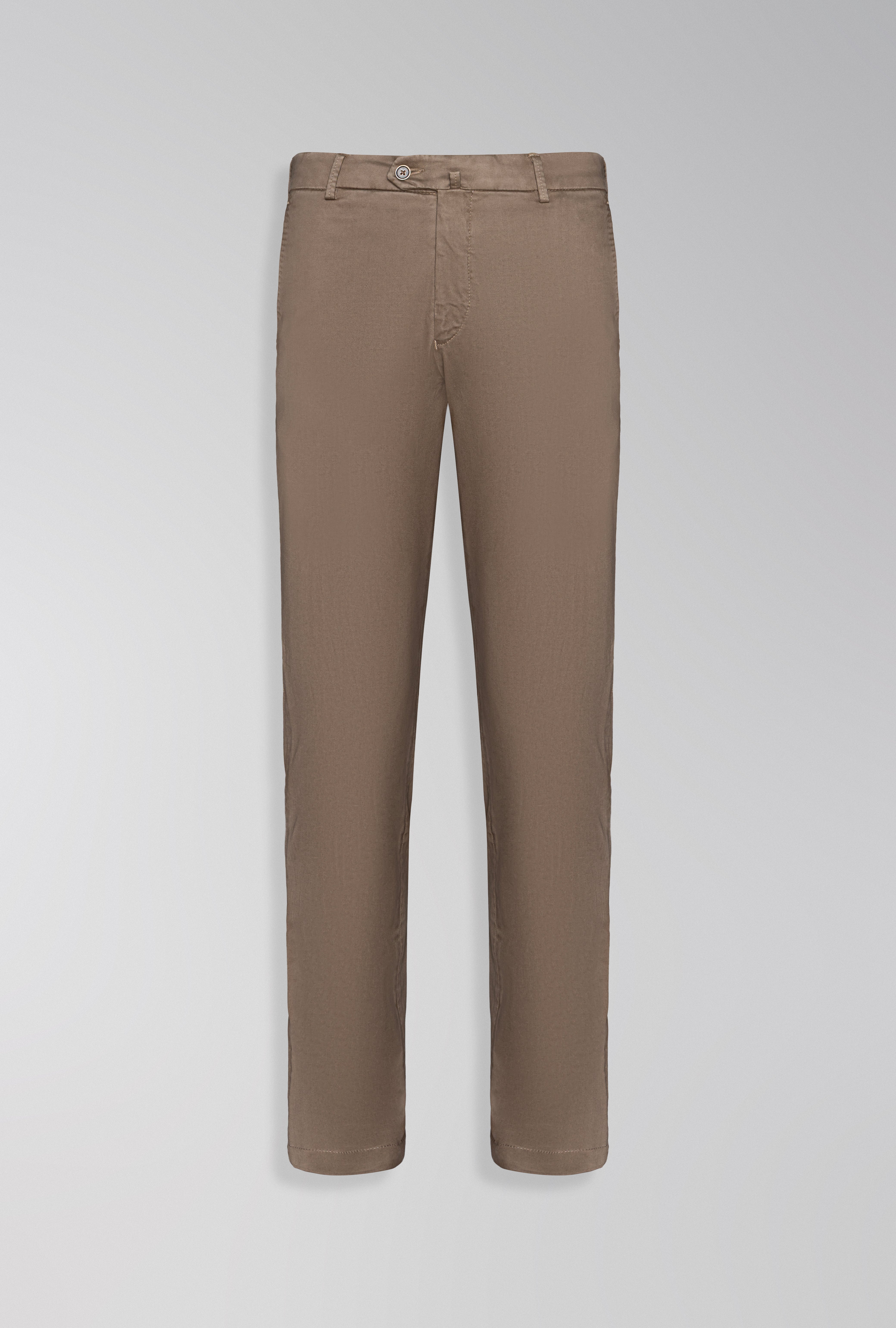 Calça de sarja de algodão, produzida na Itália em modelagem slim.