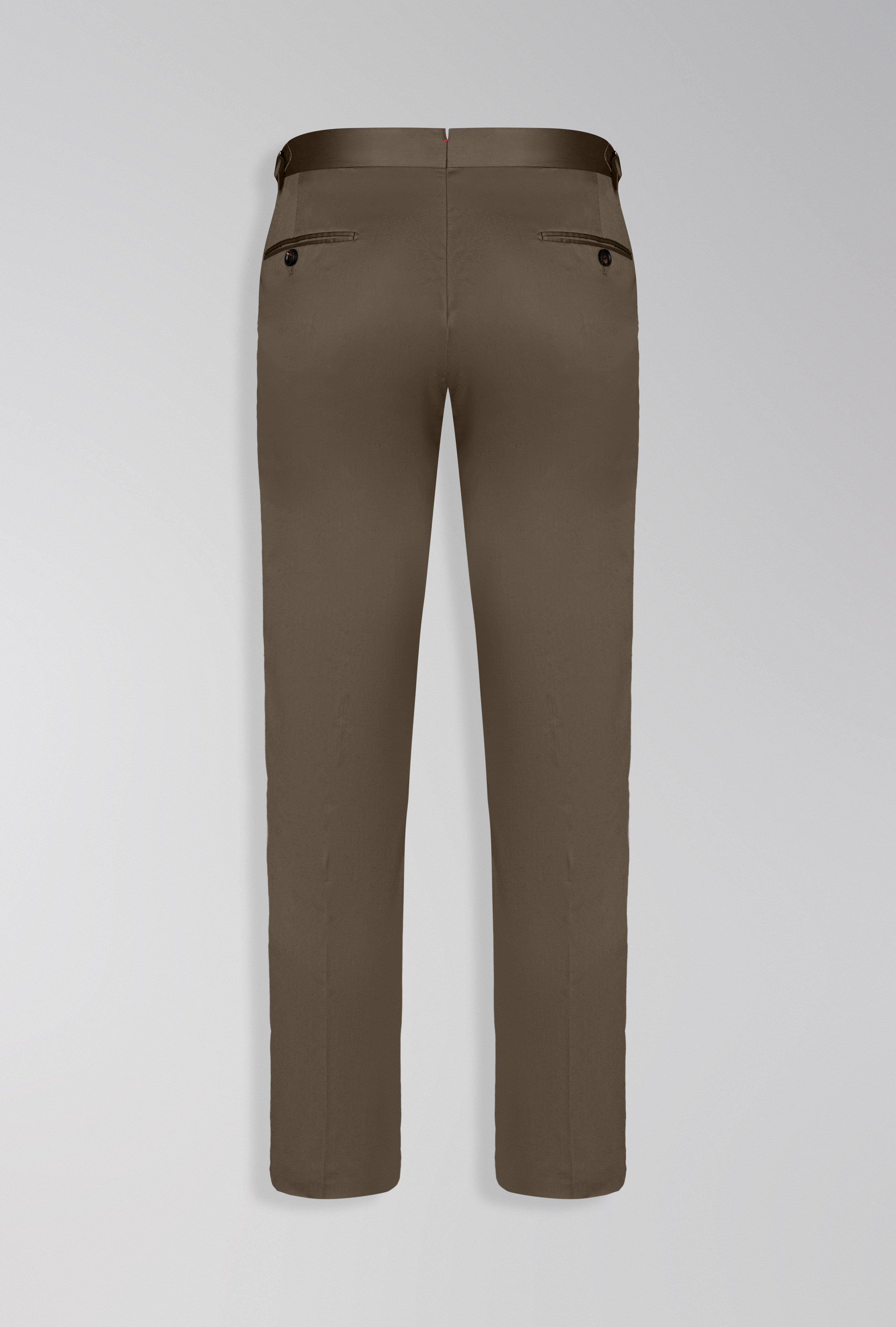Calça social confeccionada na Itália em tecido tecnólogico com pregas e reguladores laterais para ajuste perfeito no corpo sem necessidade de cinto.