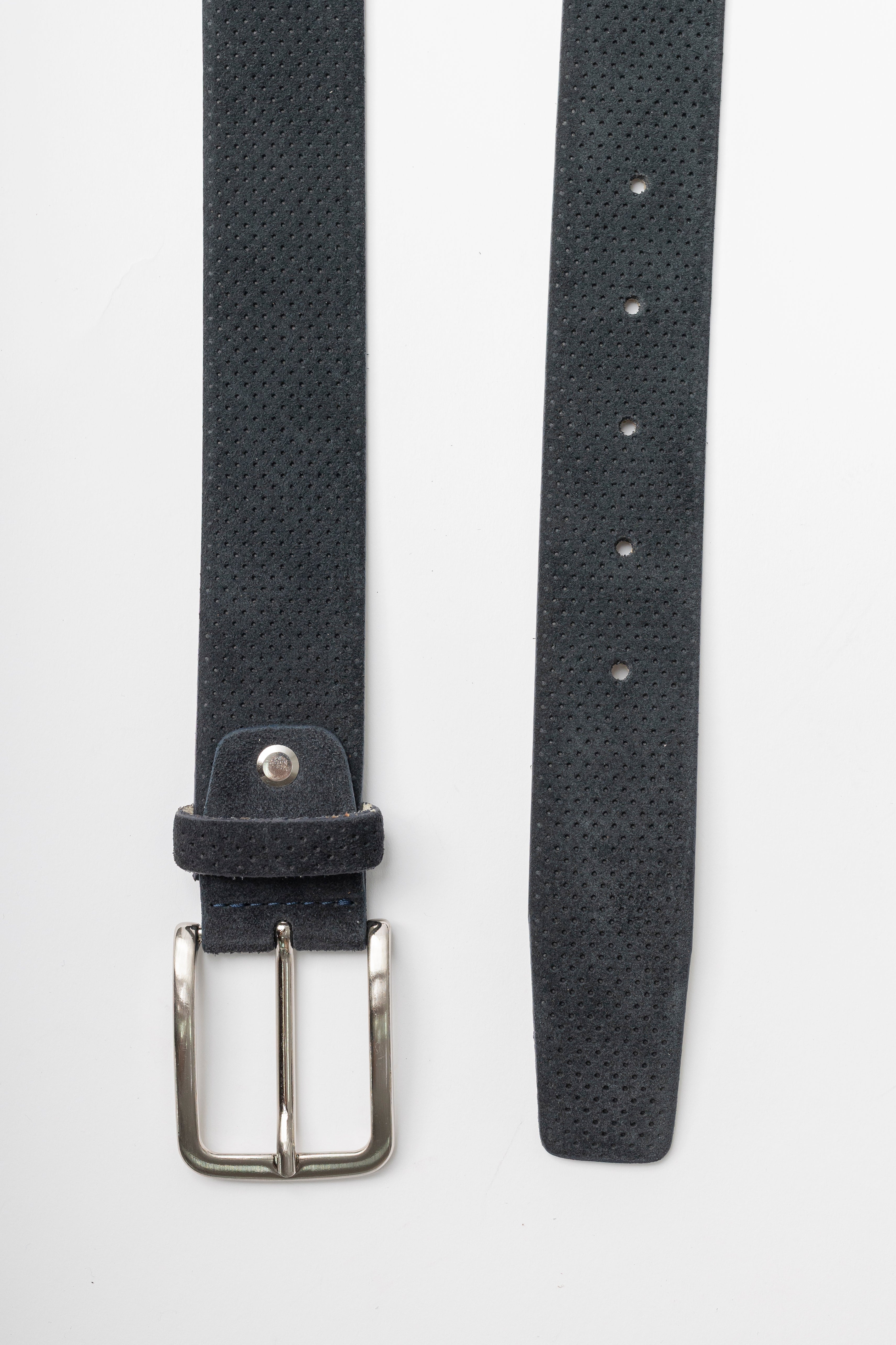 Cinto casual produzido na Itália em camurça pontilhada com fivela de metal.