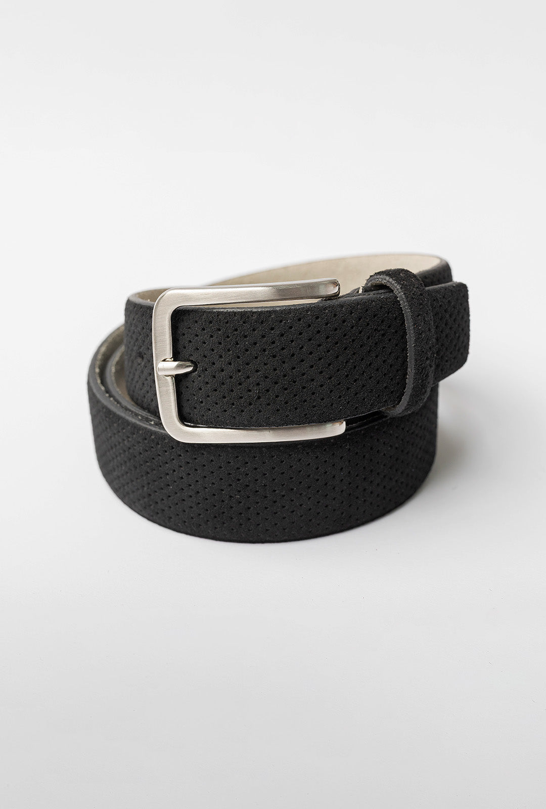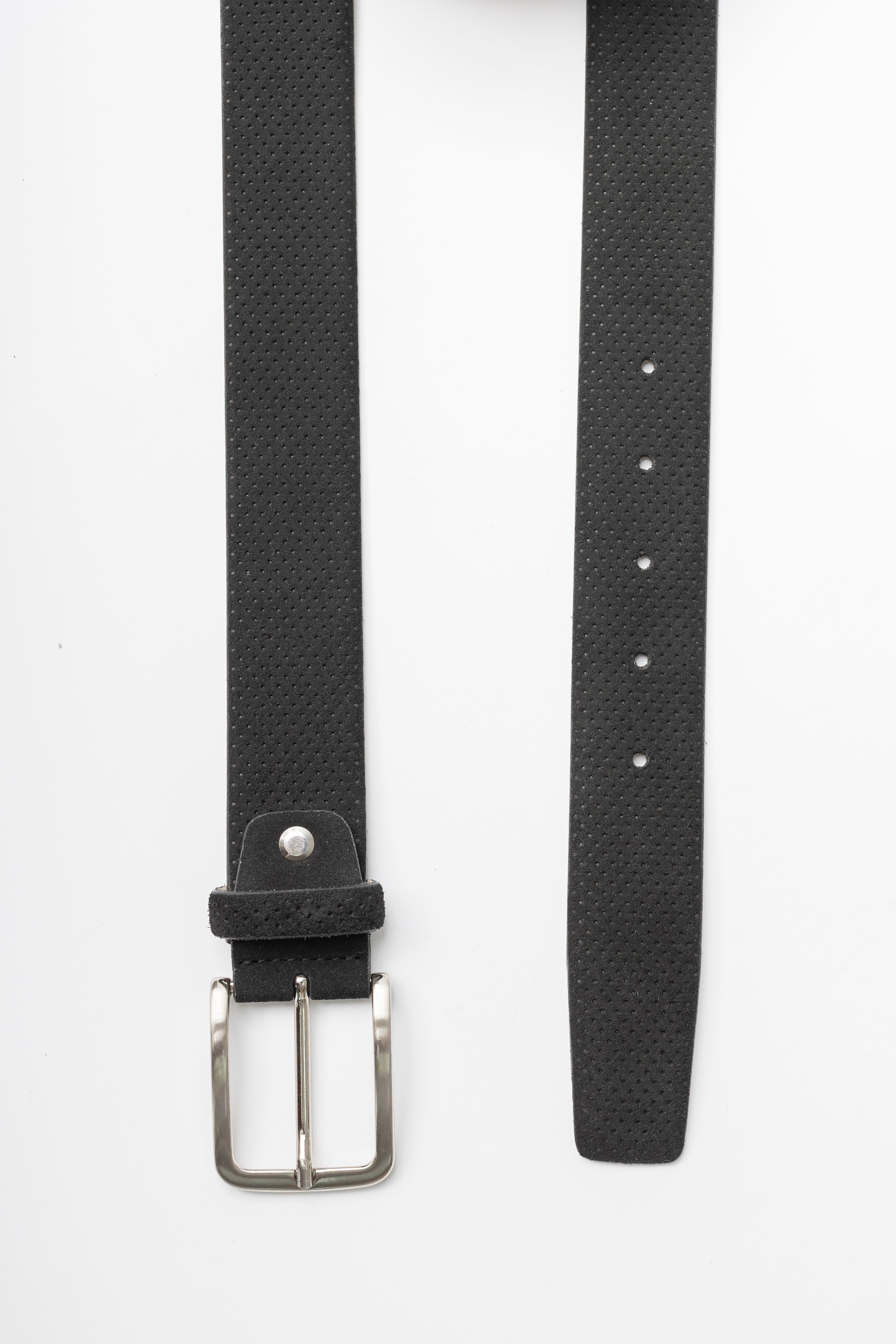 Cinto casual produzido na Itália em camurça pontilhada com fivela de metal.