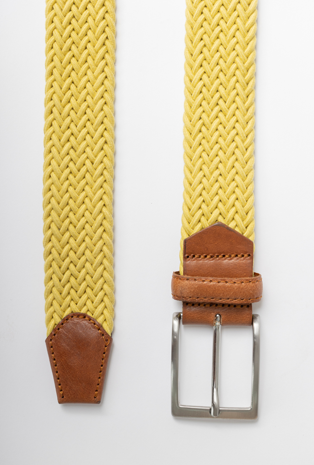 Cinto casual trançado com fivela em metal e detalhes em couro, produzido na Itália.