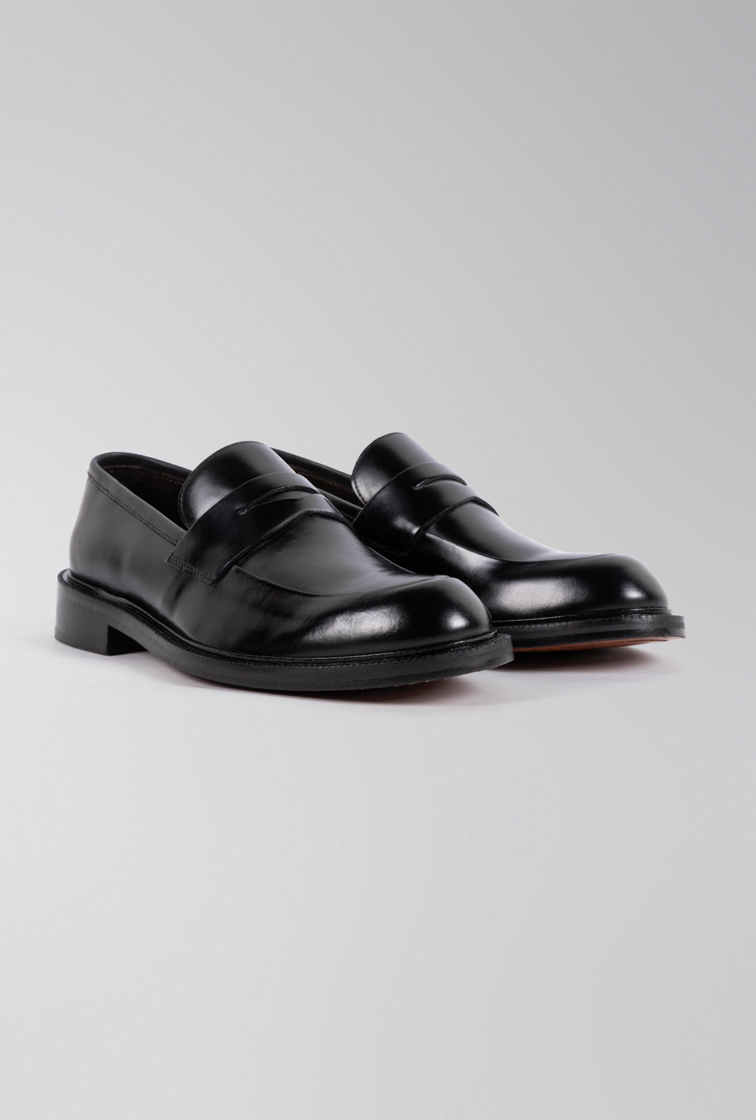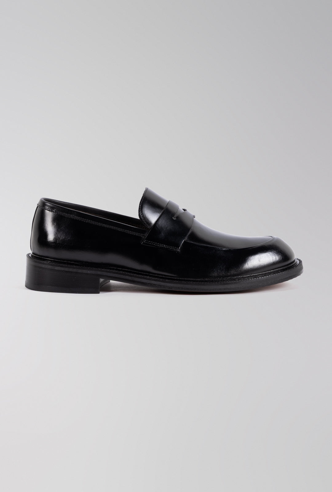 O sapato loafer Turim é confeccionado em couro preto liso, que evidencia sofisticação e elegância atemporal. Seu design apresenta o tradicional recorte frontal estilo "penny loafer", sem cadarços, oferecendo praticidade e um visual limpo. A construção robusta, com costuras precisas e solado em couro natural — finalizado com detalhes pespontados — reforça a qualidade artesanal e o acabamento premium da peça. Versátil e refinado, é o tipo de calçado que transita facilmente entre ocasiões formais e produções casuais elegantes.