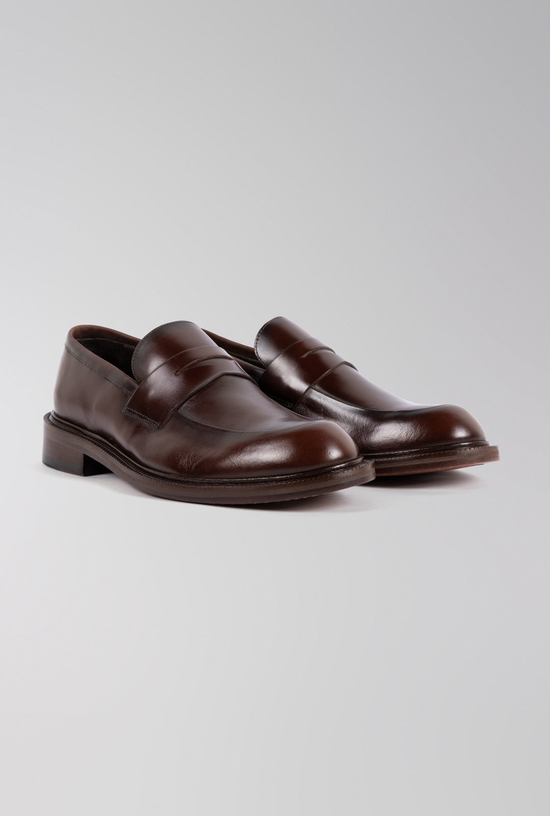 O sapato loafer Turim é confeccionado em couro preto liso, que evidencia sofisticação e elegância atemporal. Seu design apresenta o tradicional recorte frontal estilo "penny loafer", sem cadarços, oferecendo praticidade e um visual limpo. A construção robusta, com costuras precisas e solado em couro natural — finalizado com detalhes pespontados — reforça a qualidade artesanal e o acabamento premium da peça. Versátil e refinado, é o tipo de calçado que transita facilmente entre ocasiões formais e produções casuais elegantes.