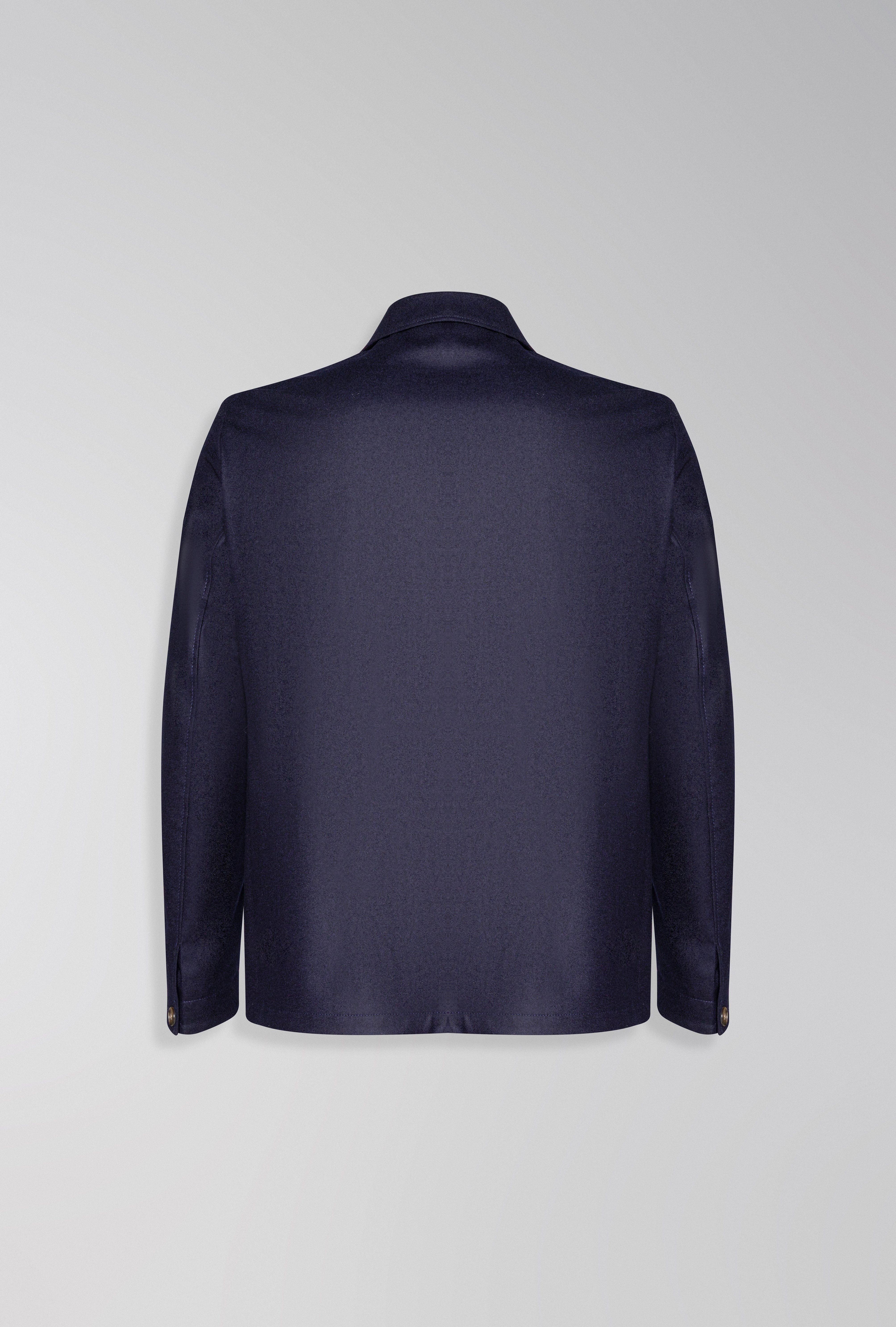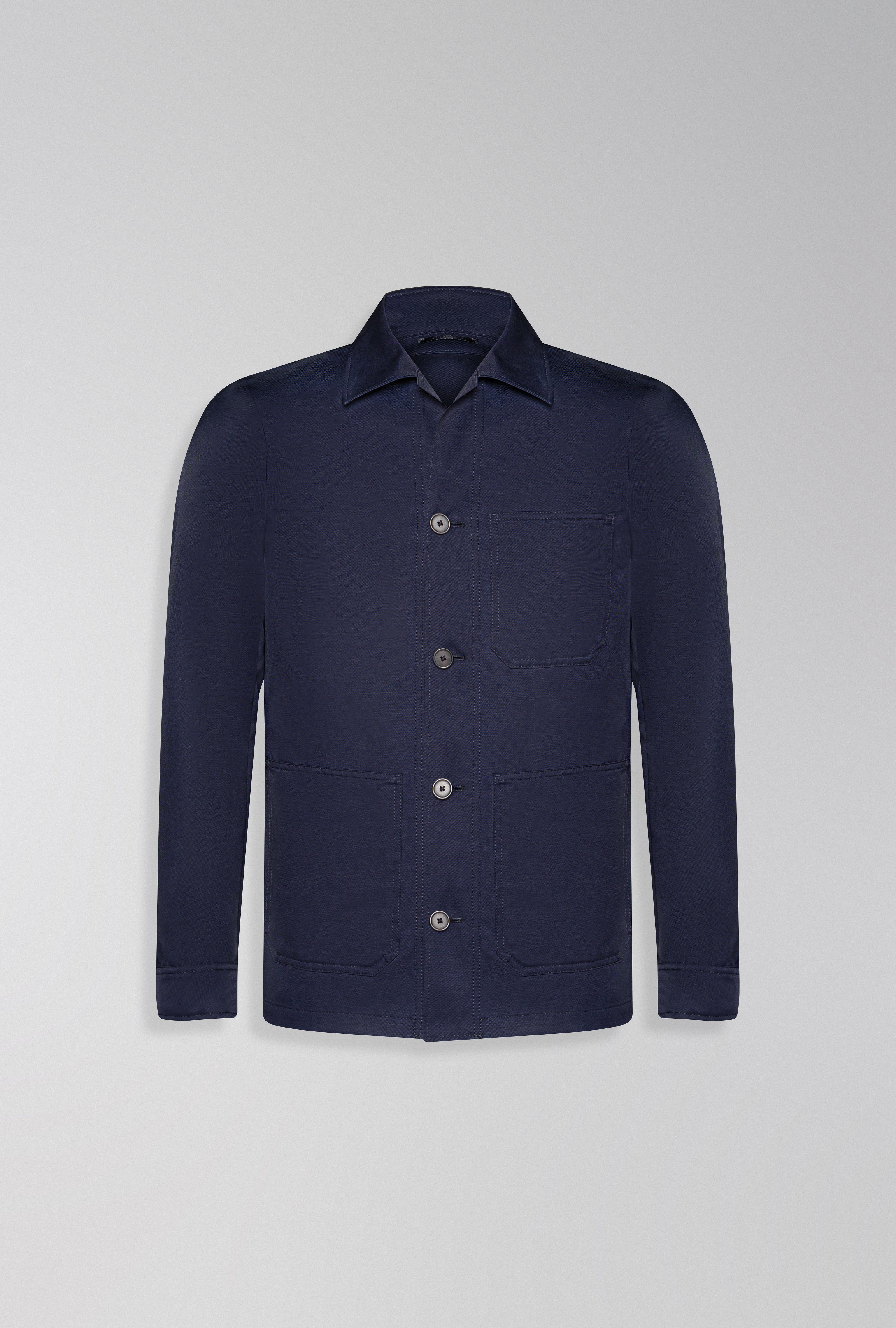 Jaqueta overshirt com bolsos frontais em sarja e fechamento em botões, confeccionada na Itália.
