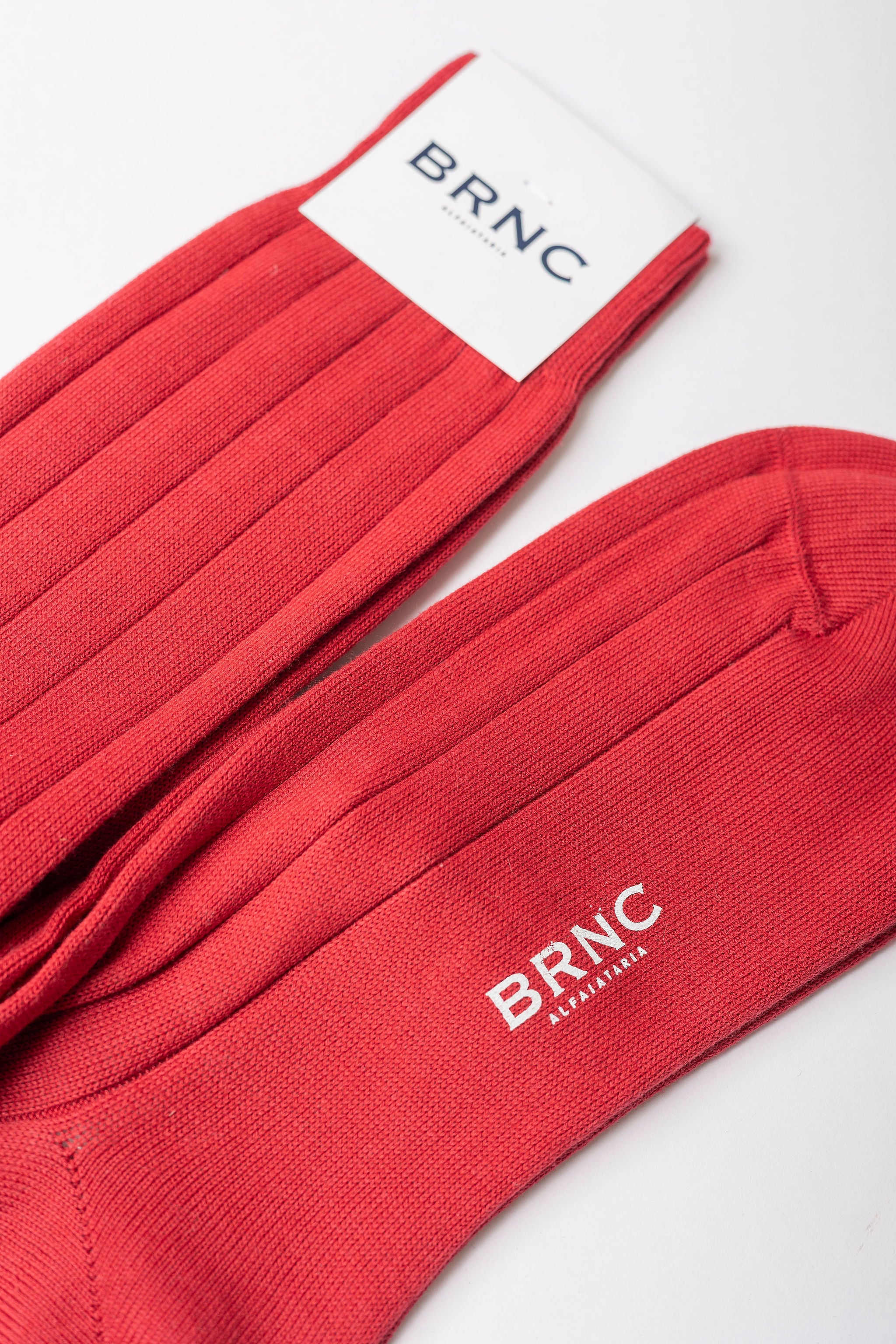 Meia social canelada de cano médio confeccionada na Itália em 100% algodão.