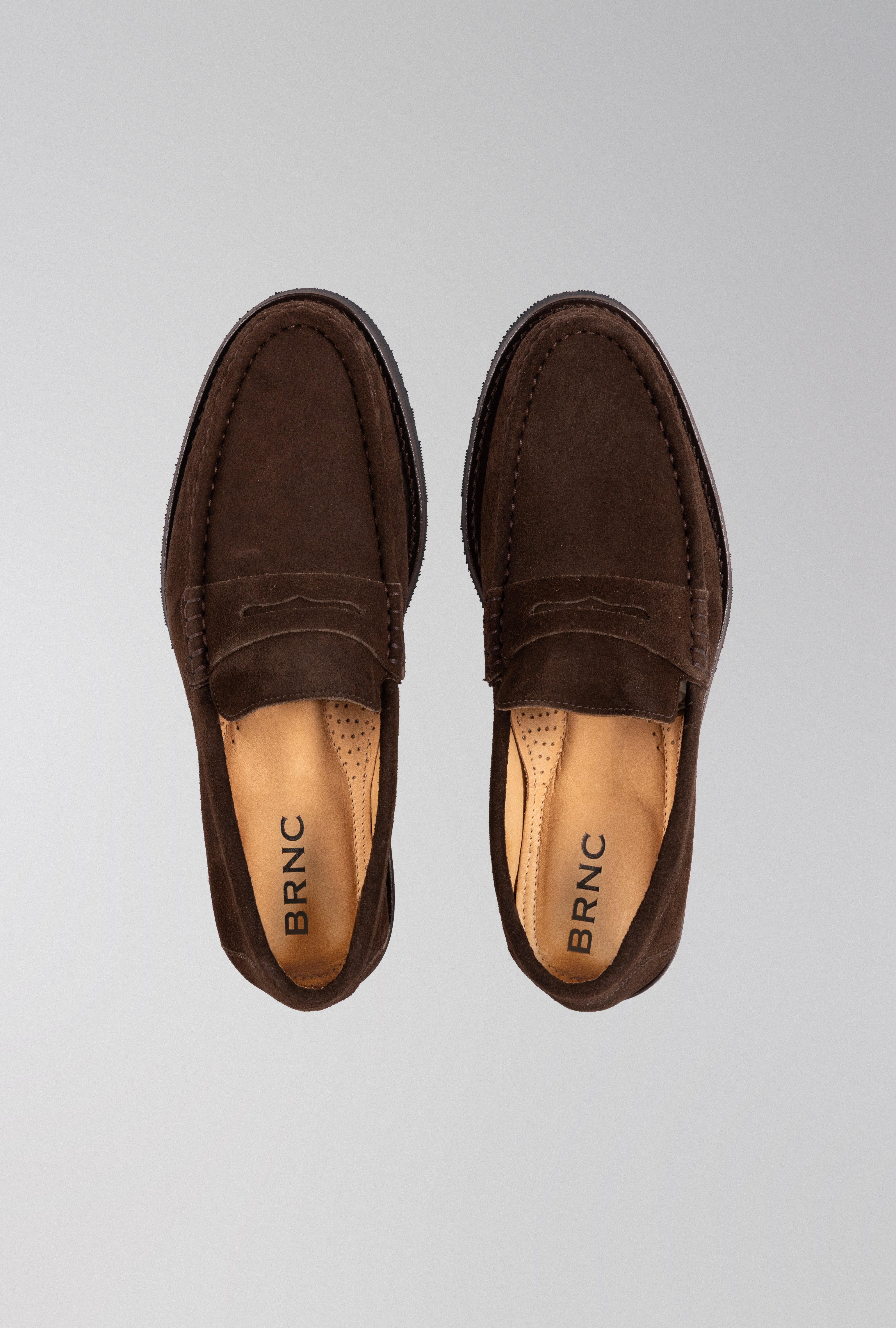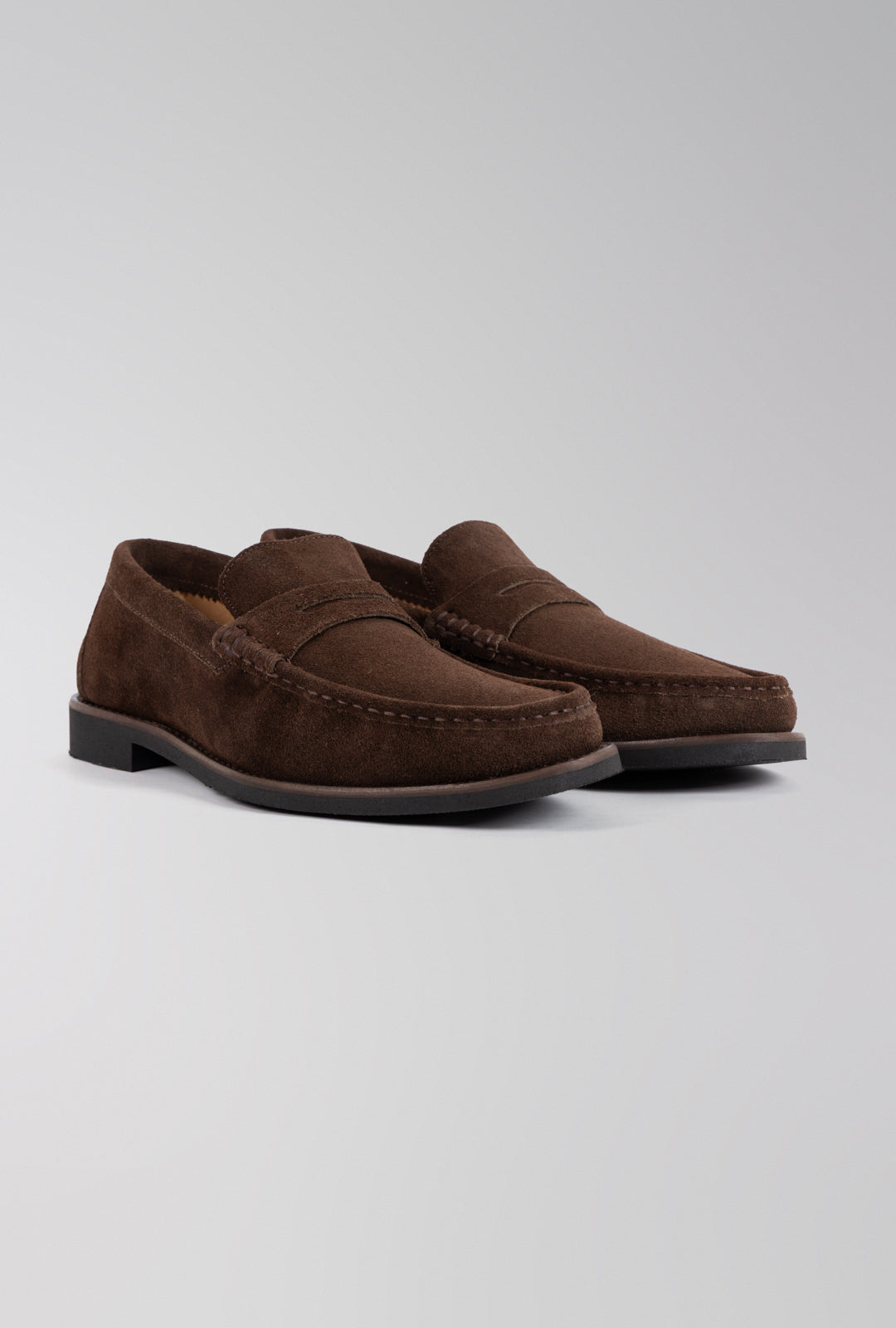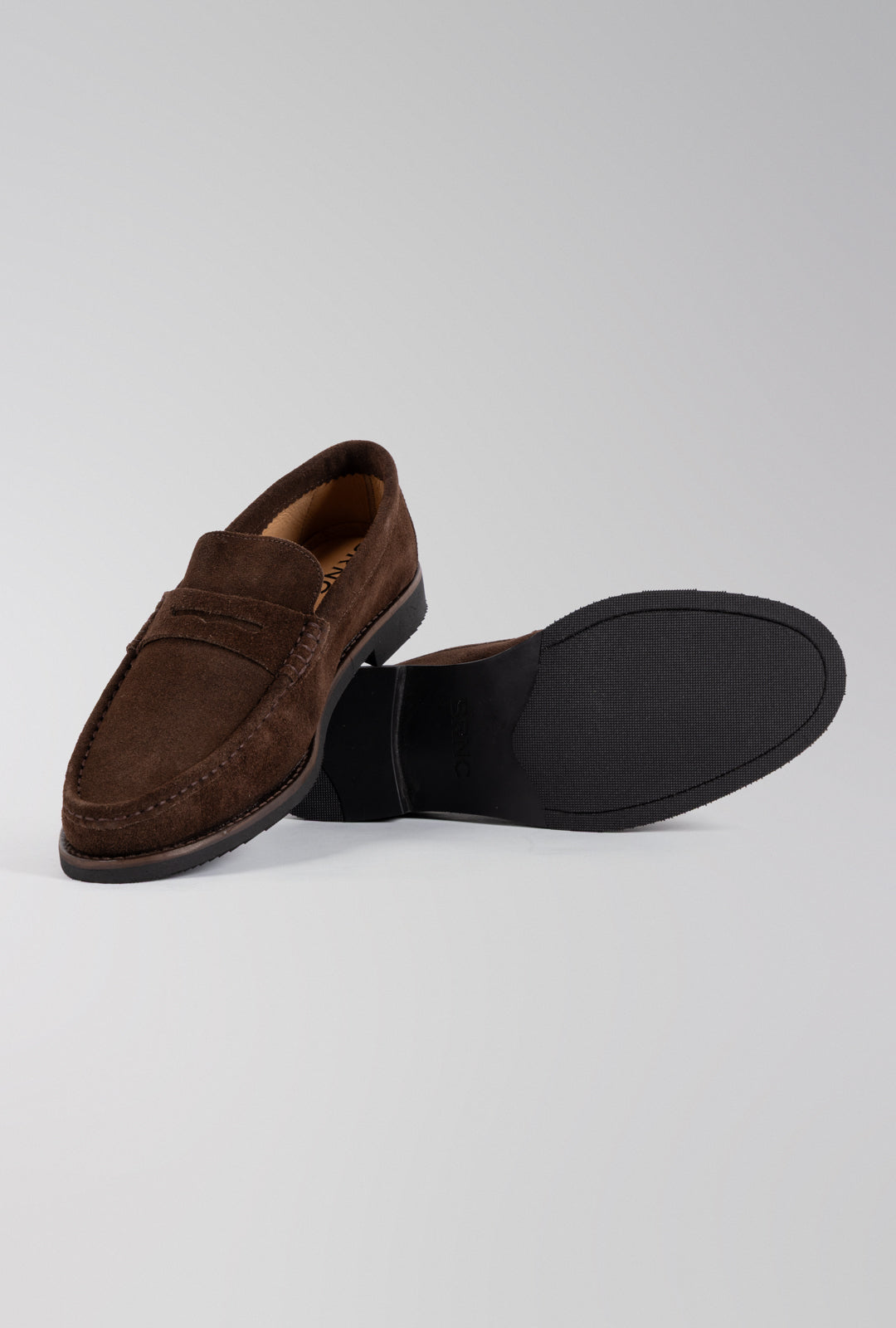 O sapato mocassim Verona em camurça possui design clássico com o tradicional detalhe "penny loafer", com pespontos à mão aparentes e acabamento aveludado característico da camurça natural. Seu interior é acolchoado, proporcionando maciez e respirabilidade, enquanto o solado em borracha garante durabilidade e excelente aderência, ideal para o uso cotidiano. Versátil e refinado, é um calçado que combina perfeitamente com looks casuais ou de alfaiataria leve, oferecendo um toque de estilo descontraído e atemporal.